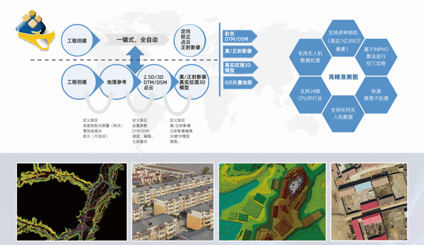 ·全自动空三,相机自检校,高密度点云匹配与高精度正射影像创建