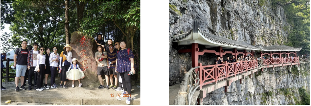 接着来到了“重头戏”天门山上,稍作休整后大家开始了一鼓作气上天梯、穿溶洞、走世界最高玻璃栈道。而后坐索道下山。经过三天的张家界之旅,大家放空心情,领略大自然的美好,充实灵魂,感受生活的种种乐趣。要奋斗,也要远方。我们珍惜携手并肩,风雨同舟的日子!