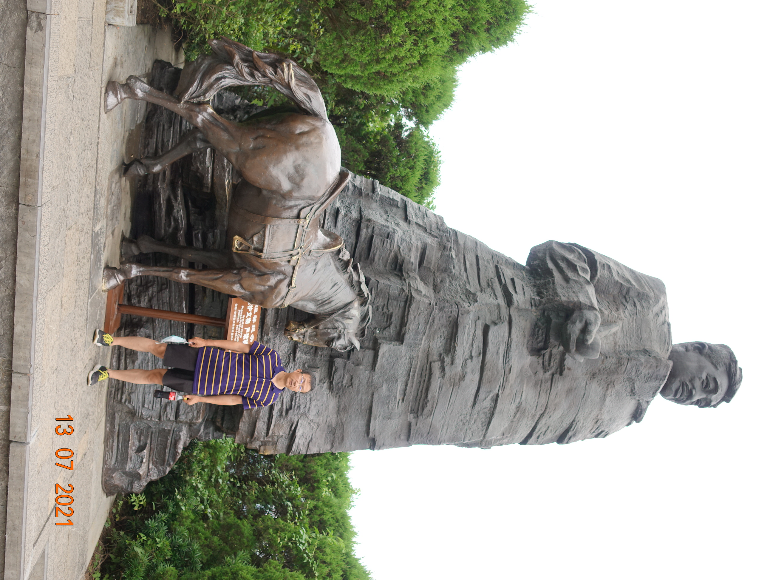 在公园里听着贺龙元帅的故事,感受他的家国情怀。