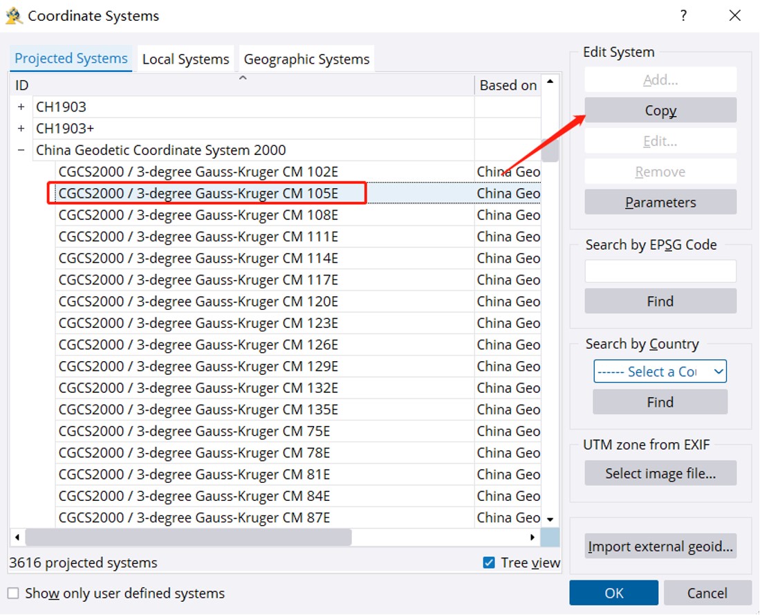选择一个相近的投影方式,以及中央经线,进行复制。
