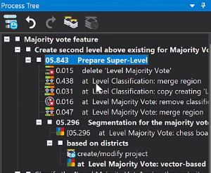 9. 按照规则集顺序执行多数投票特征一,即按地物类型面积进行投票部分,执行结果如下