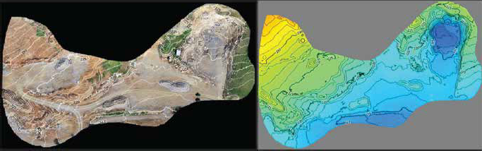 能够显示等高线(等值线)以可视化显示的正射投影的高度剖面 - 用户可以设置最小和最大高度和等高线间隔。提供土地如何下降以及高点和低点在哪里的视觉表示 - 对地形调查和工程工作流程很有用。