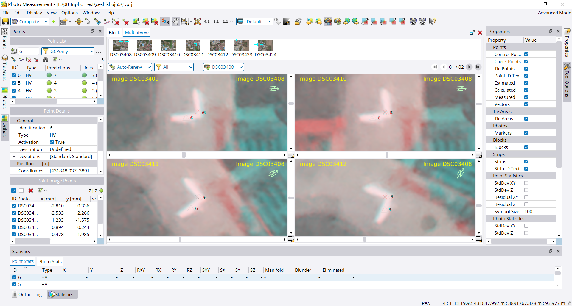 ,在立体下对每个控制点进行查看,也可以使用点评估工具计算模型误差。