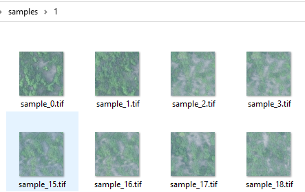 指定样本的地物特征类别,存放样本格式(TIF或RAW),样本数量、样本包大小、样本采集使用的影像波段,以及样本存放路径。