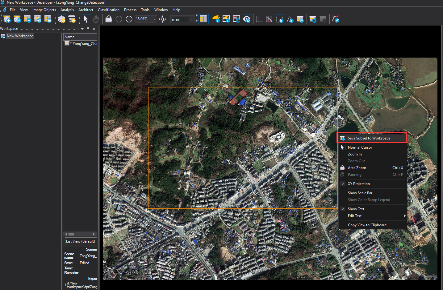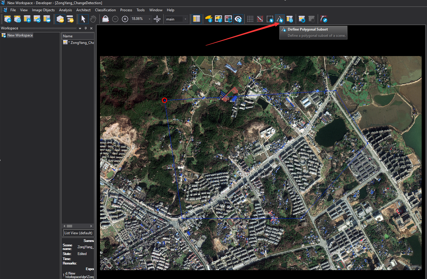 用户在用eCognition软件进行智能化数据解译分析时,有时候未必采用所加载数据覆盖的整个范围作为研究区域,若采用部分区域作为研究区域,可通过以下方法进行子集创建。