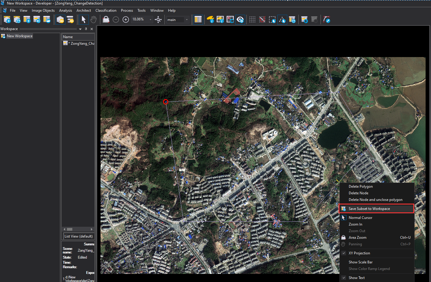 polygonal Subset”来创建子集。在通过这两个工具创建研究区域后,在区域轮廓处点击右键,选择“保存子集到工作空间/Save Subset to Workspace”。