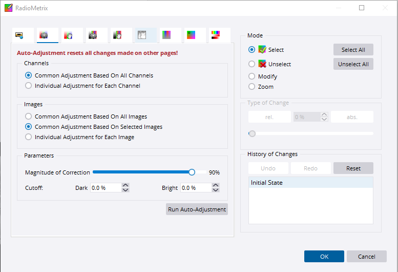 选中影像命令器中的影像文件,点击“RadioMetrix”。