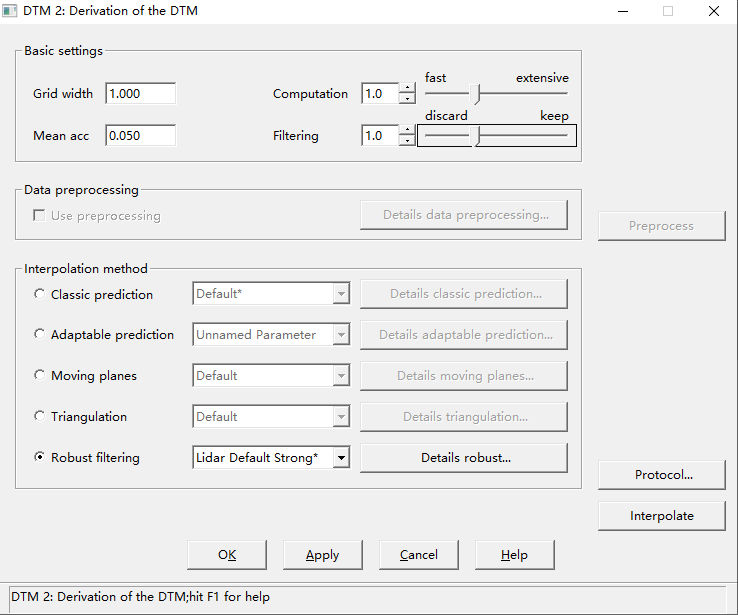 图9 DTM参数设置