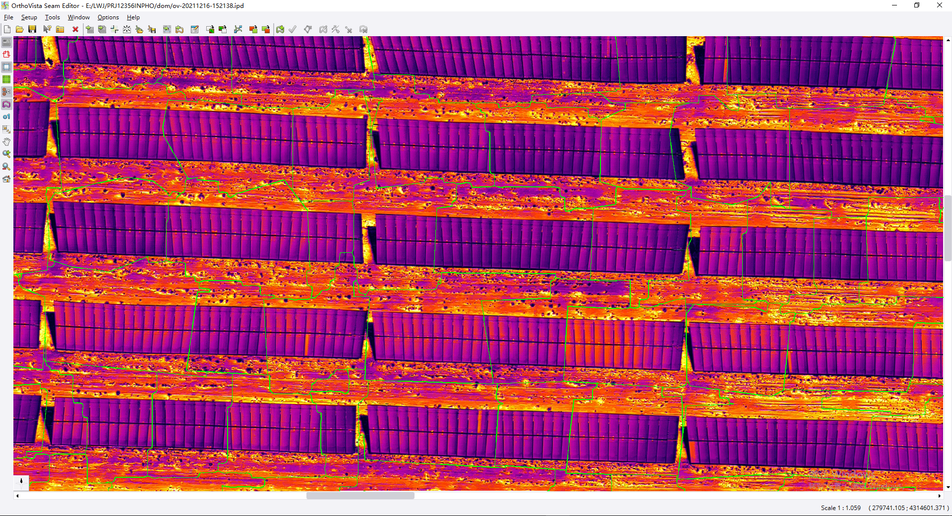 用Inpho OrthoVista SeamEditor模块打开UASMaster生成正射影像单片文件中的ipd工程文件。